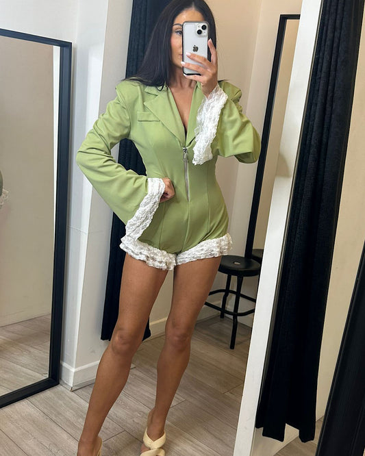Plunge Neck Lace Hem Blazer Playsuit