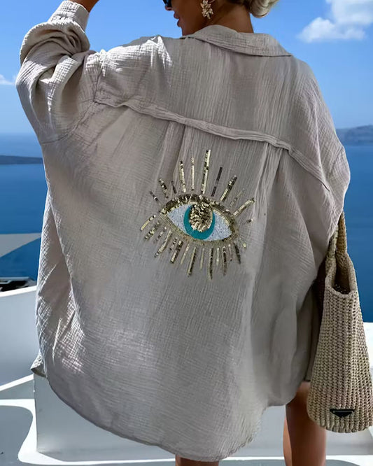 Beige Oversized Sequin Eye Shirt