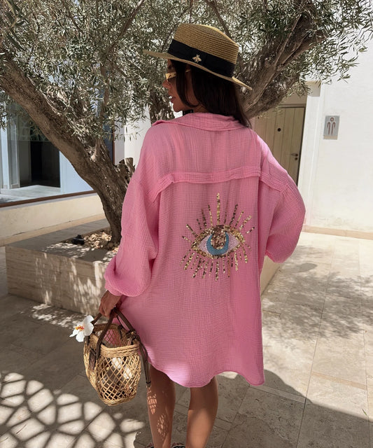 Pink Oversized Sequin Eye Shirt