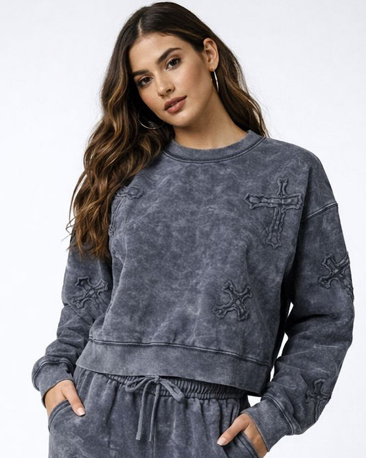 Black Acid Wash Cross Suit