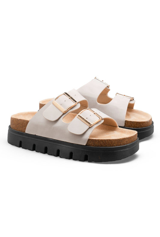 Beige Double Buckle Sandals