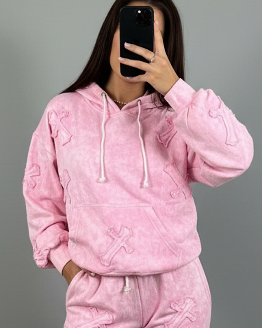 Hooded Pink Acid Wash Cross Suit