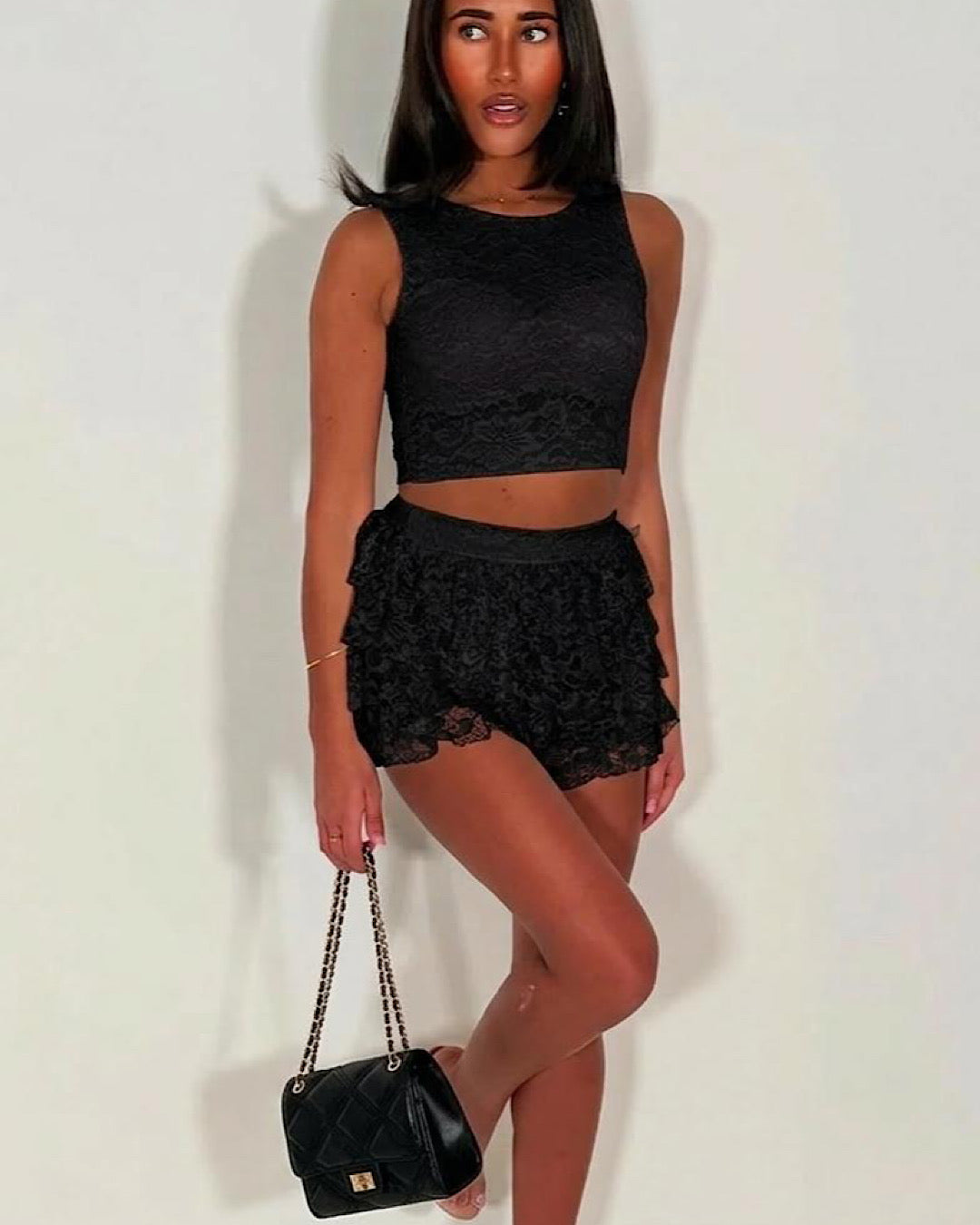 Black Lace Top and Skort Set
