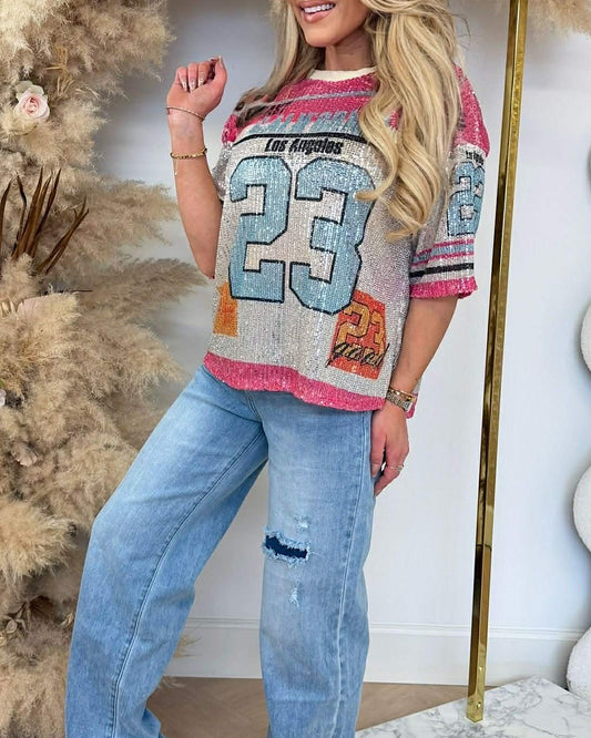 LA 23 Pink Sequin Top