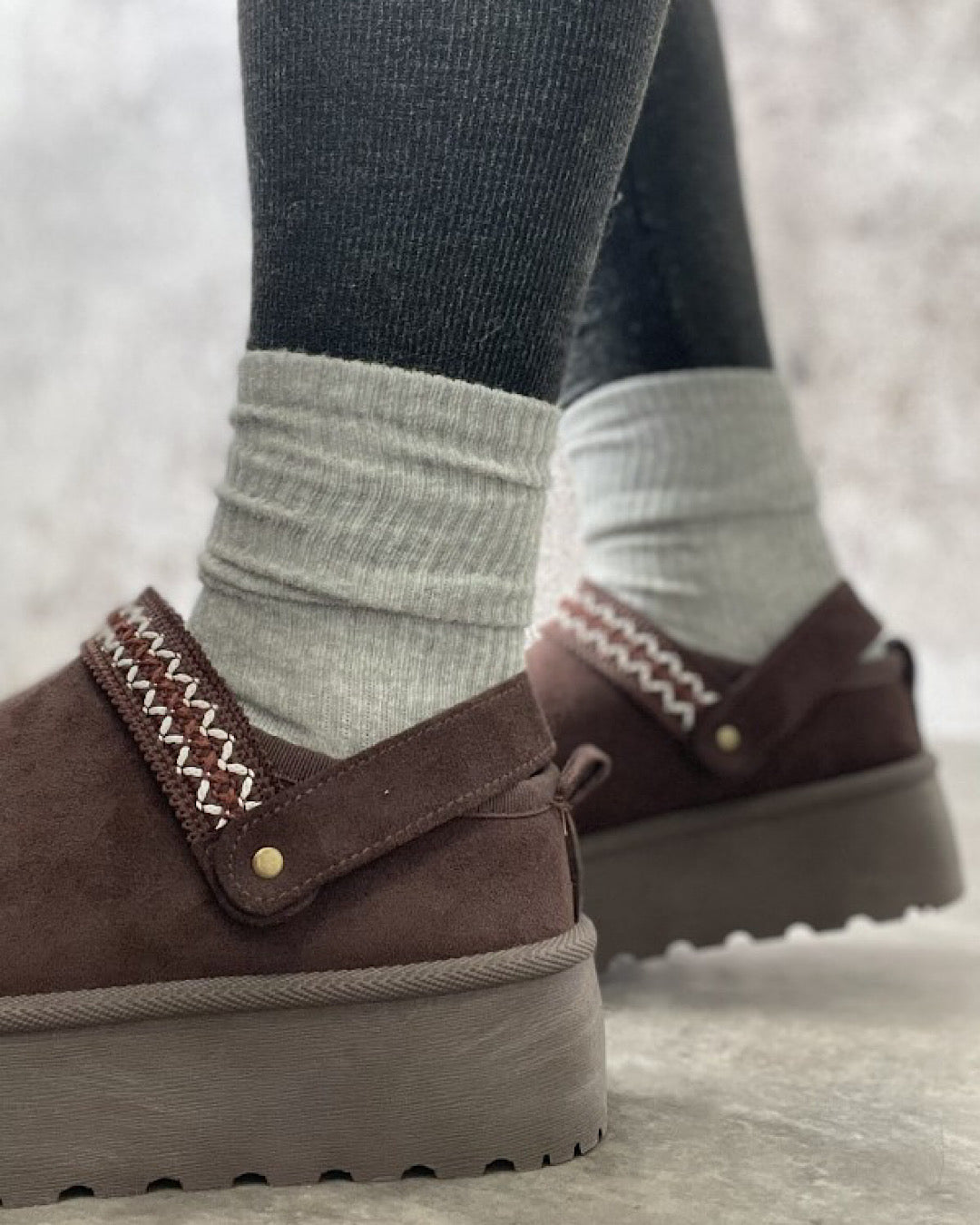 Expertly crafted with faux suede and lined with luxurious faux fur, these Chocolate Platform Boots elevate any outfit. Stitch details add a touch of sophistication to the platform ankle design. Stay stylish and comfortable all day long with these must-have boots.